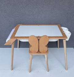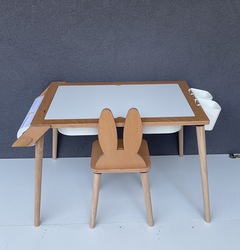 8 mm kalınlığındaki masa kapağının bir tarafı tahta kalemi ile yazıp silebileceğiniz parlak düz yüzeydir.