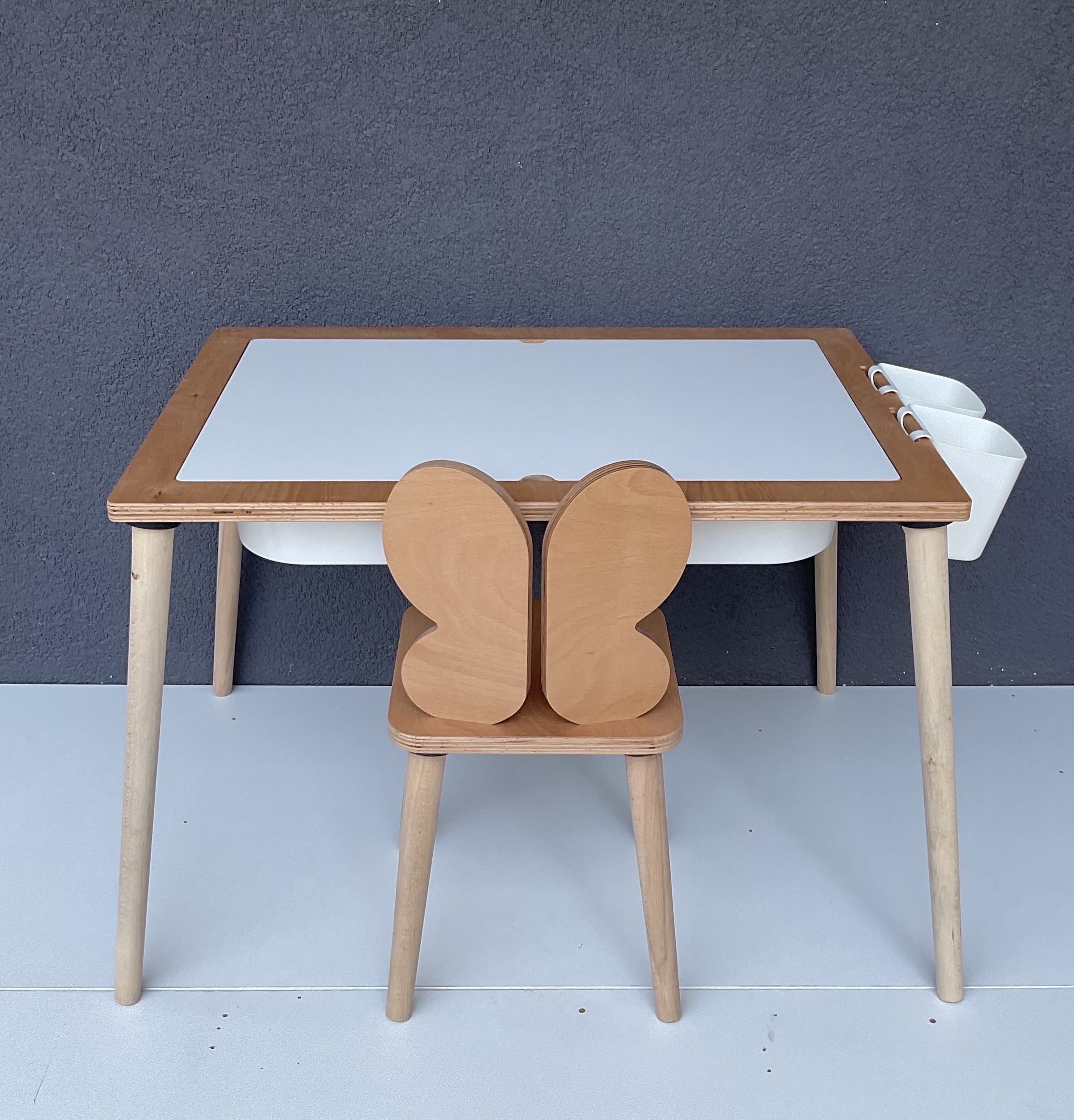 İki adet beyaz etkinlik kutusu sayesinde kum ve su ile çeşitli etkinlikler
