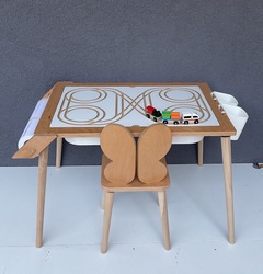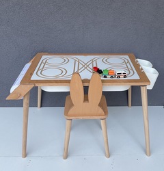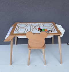 Masa kapağının diğer yüzeyinde tren yolu bulunmaktadır. 1 adet 3 vagonlu tren ve iki adet kalemlik hediyemizdir.
